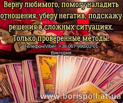 Ищете ясновидящую, таролога, экстрасенса в Киеве? Меня зовут Виктория. Я ясновидящая, экстрасенс, рунолог и таролог. Уже много лет я помогаю людям находить ответы на самые сложные вопросы, менять судьбу