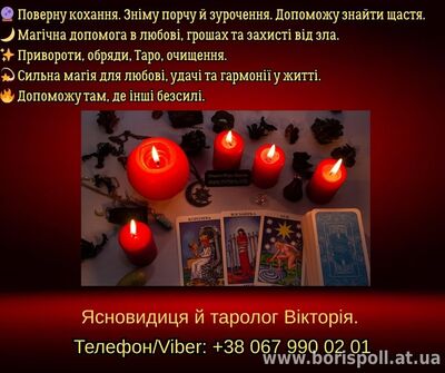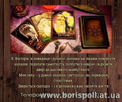 Шукаєте допомогу ясновидиці, екстрасенса, рунолога і таролога? Мене звати Вікторія, і я працюю з людьми, допомагаючи змінювати їхню долю за допомогою стародавніх знань, ритуалів і магії. Я відчуваю