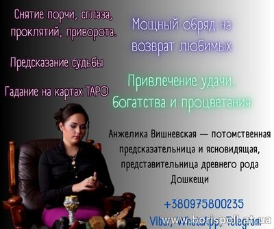 Зніму порчу, пристріт, прокляття Вирішу проблеми в сімейних відносинах Відкрию грошові канали та притягну фінансовий успіх Працюю з давніми обрядами, безпечним